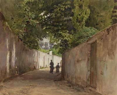 Andrej Lavezzari ( 1817 - 1881 ) was a Russian painter. Andrej Lavezzari s works have been put up for auction numerous times, with realized prices surpassing estimated prices, varying from 391.49 USD for St. Malo. Fischerfrau und Kind an der Küste in 2009 to 1779 USD for A shady path in the South in 2012 , based on the size and medium of the artwork.