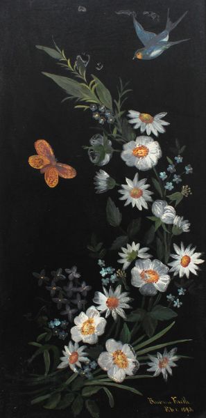 Barbara Faella ( - ) is a painter. Barbara Faella s works have been auctioned off multiple times, with realized prices varying according to the size and medium of the artwork, for instance of 200 USD for Nature Study with Butterfly, Birds, and Daisies in 2012