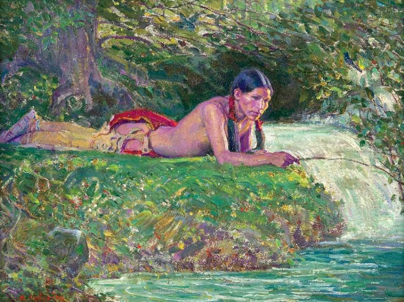 Bert Greer Phillips ( 1868 - 1956 ) was an American painter. Bert Greer Phillips s works have been put up for auction numerous times, with realized prices surpassing estimated prices, varying from 64100 USD for Husking Corn: Taos Pueblo in 2004 to 120000 USD for Ancient Chants in 2005 , based on the size and medium of the artwork.