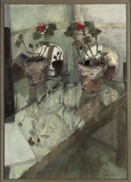 Binny Mathews ( 1960 - ) is a British painter. Binny Mathews s works have been put up for auction numerous times, with realized prices varying from 173.83 USD for Still life with benin head in 2004 to 399.87 USD for Geraniums in 2010 , based on the size and medium of the artwork.
