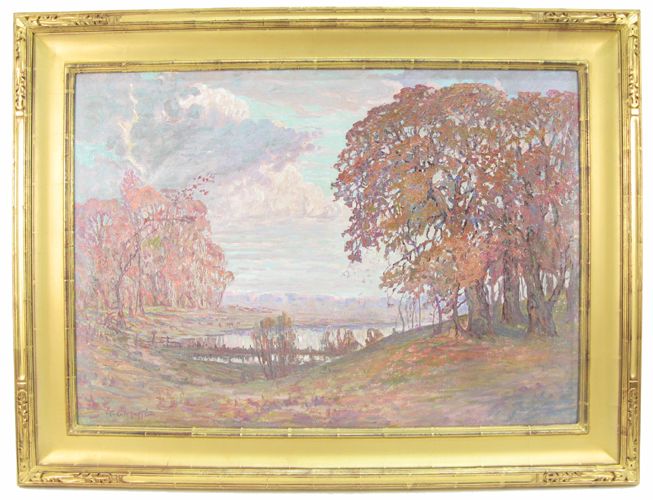 Charles C Mc Kim ( 1872 - 1939 ) was an American painter. Charles C Mc Kim s works have been put up for auction numerous times, with realized prices surpassing estimated prices, varying from 12000 USD for A wooded landscape with meandering stream in 2004 to 12500 USD for An impressionistic pastoral fall landscape near the Columbia River, Oregon in 2007 , based on the size and medium of the artw
