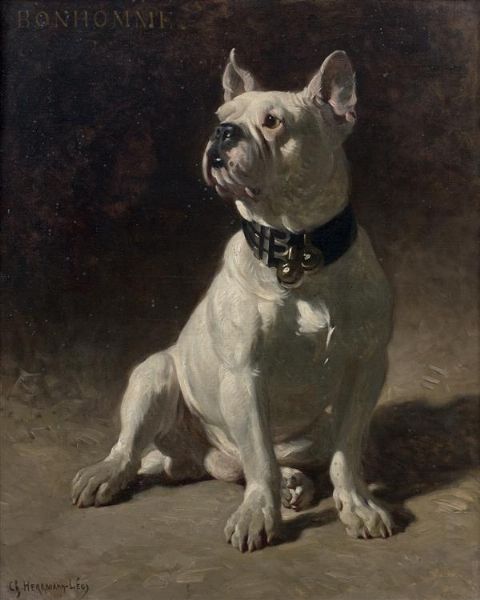 Charles Hermann Leon ( 1838 - 1908 ) was a painter. Charles Hermann Leon s works have been auctioned off multiple times, with realized prices varying according to the size and medium of the artwork, for instance of 6478.91 USD for Portrait du bouledogue Bonhomme in 2013