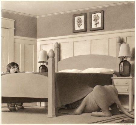 Chris Van Allsburg ( 1949 - ) is an American painter. Chris Van Allsburg s works have been put up for auction numerous times, with realized prices surpassing estimated prices, varying from 4688 USD for Interior with Ice Skate on Wall in 2017 to 20000 USD for The Garden of Abdul Gasazi in 2017 , based on the size and medium of the artwork.