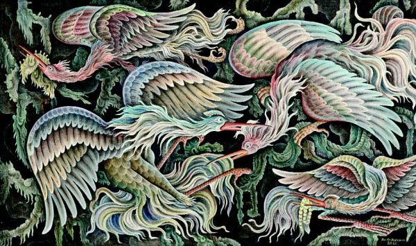 Dewa Ketut Rungun ( 1922 - 1986 ) was an Indonesian painter. Dewa Ketut Rungun s works have been put up for auction numerous times, with realized prices varying from 123.04 USD for Wading Birds, Bali in 2008 to 203.24 USD for Vogels in 2009 , based on the size and medium of the artwork.