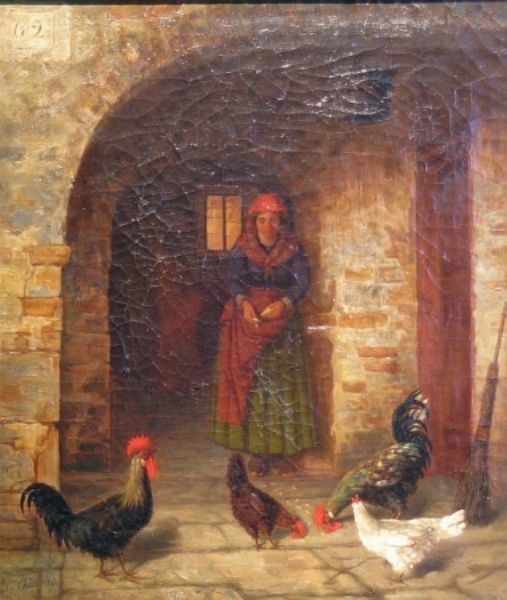 Domenico Chiesura ( - ) is an Italian painter. Domenico Chiesura s works have been auctioned off multiple times, with realized prices varying according to the size and medium of the artwork, for instance of 425 USD for WOMAN FEEDING FOWL, circa 1873 in 2006