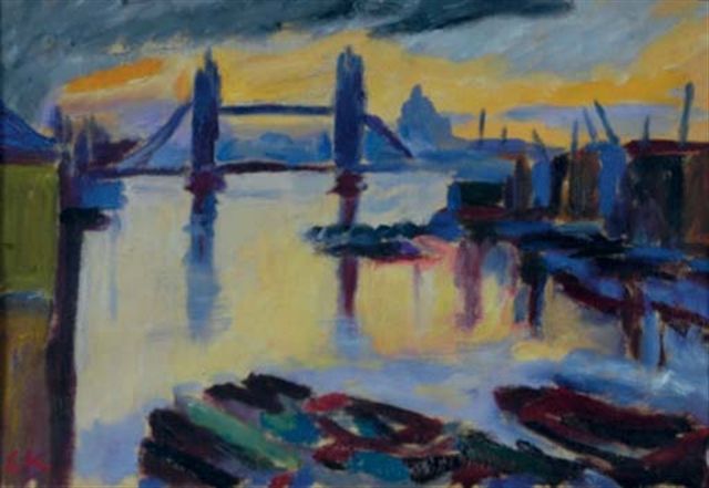 Eardley Knollys ( 1902 - 1992 ) was a British painter. Eardley Knollys s works have been put up for auction numerous times, with realized prices varying from 51.33 USD for 'Fruit plate on blue' in 2004 to 500 USD for Tower Bridge, London in 2007 , based on the size and medium of the artwork.