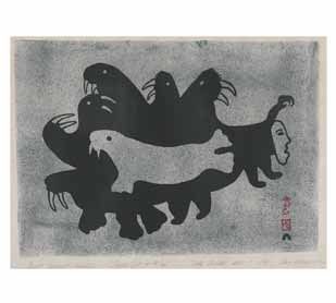 Eegyvudluk Pootoogook ( 1931 - ) is a painter. Eegyvudluk Pootoogook s works have been put up for auction numerous times, with realized prices surpassing estimated prices, varying from 243.37 USD for GATHERING SPRING PLANTS in 2007 to 3291.54 USD for SPIRIT AMONGST WALRUS in 2008 , based on the size and medium of the artwork.