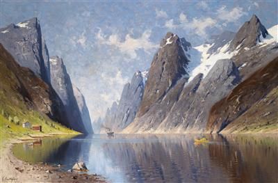 Elisabeth Grüttefien ( 1900 - ) is a German painter. Elisabeth Grüttefien s works have been put up for auction numerous times, with realized prices surpassing estimated prices, varying from 289.11 USD for Wassertr√§gerin vor H√ºtte in 2005 to 1744.73 USD for Large Fjord Landscape with Steamship in 2012 , based on the size and medium of the artwork.