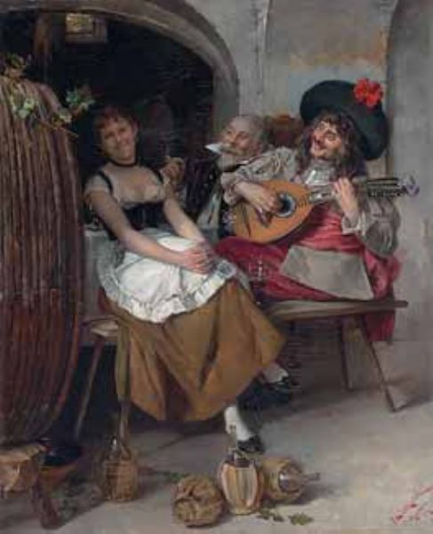 Eugène Klinckenberg ( 1858 - ) is a Dutch painter. Eugène Klinckenberg s works have been put up for auction numerous times, with realized prices surpassing estimated prices, varying from 937.94 USD for Ein Mandoline spielender Zecher bet√∂rt ein junges in 2006 to 2400 USD for FEAST OF THE MUSKETEERS in 2007 , based on the size and medium of the artwork.