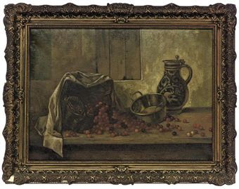F Brouwer ( - ) is a painter. F Brouwer s works have been put up for auction numerous times, with realized prices varying from 130.01 USD for Still Life Study of Basket of Cherries, Cooking Pan and Wine Jug, on a Table in 2010 to 135.58 USD for A basket with cherries, a pewter-mounted jug and a pan, on a wooden table in 2010 , based on the size and medium of the artwork.