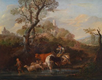 Franciscus Xaverius Xavery ( 1740 - 1773 ) was a Dutch painter. Franciscus Xaverius Xavery s works have been auctioned off multiple times, with realized prices varying according to the size and medium of the artwork, for instance of 16531.22 USD for A WOODED LANDSCAPE WITH A SHEPHERD PLAYING A FLUTE AND A SHEPHERDESS SPINNING UNDER A TREE, THEIR HERD RESTING IN THE FOREGROUND in 2003