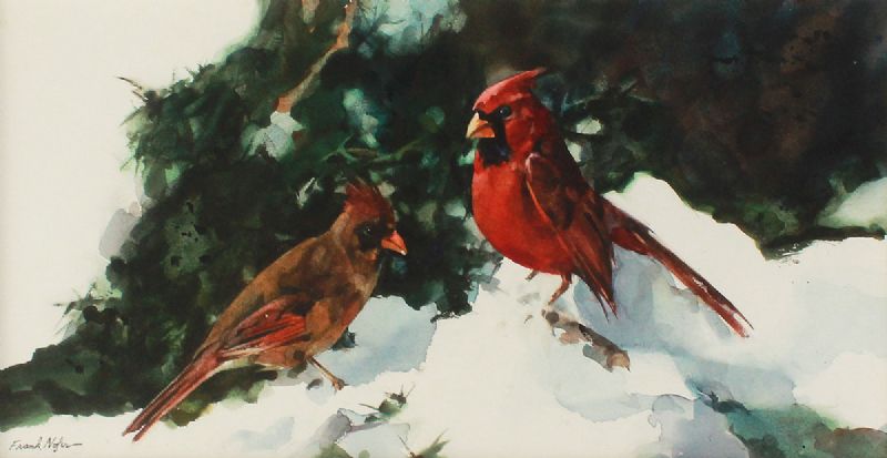 Frank Nofer ( 1900 - ) is an American painter. Frank Nofer s works have been put up for auction numerous times, with realized prices varying from 150 USD for Canadian Goose in 2012 to 225 USD for Cardinals in Winter in 2012 , based on the size and medium of the artwork.