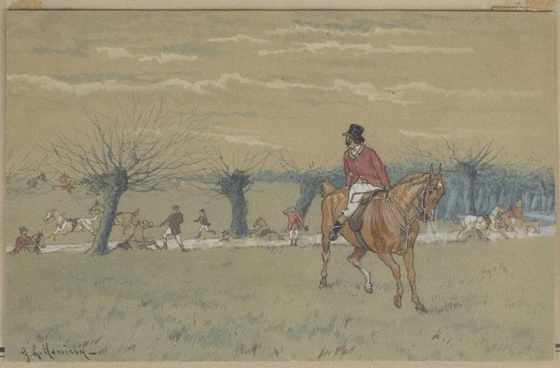 George L Harrison ( 1811 - 1883 ) was a British painter. George L Harrison s works have been put up for auction numerous times, with realized prices varying from 93.59 USD for Duck and ducklings by a country path, with thatched cottage and valley beyond in 2004 to 210.68 USD for Fuchsjagd mit Hindernis in 2013 , based on the size and medium of the artwork.
