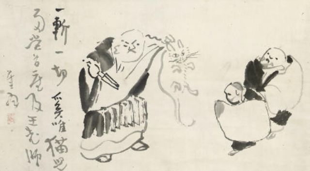 Gibon Sengai ( 1750 - 1837 ) was a Japanese painter. Gibon Sengai s works have been put up for auction numerous times, with realized prices surpassing estimated prices, varying from 900 USD for HOTEI YAWNING, in 2004 to 21250 USD for Nanquan chopping the kitten in two in 2008 , based on the size and medium of the artwork.