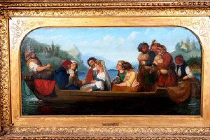 Giuseppe Baldrighi ( 1723 - 1803 ) was an Italian painter. Giuseppe Baldrighi s works have been auctioned off multiple times, with realized prices varying according to the size and medium of the artwork, for instance of 2166.38 USD for The Wedding - a bridge conveyed on a ferry boat accompanied by bridesmaids, family and bagpipers in 2009