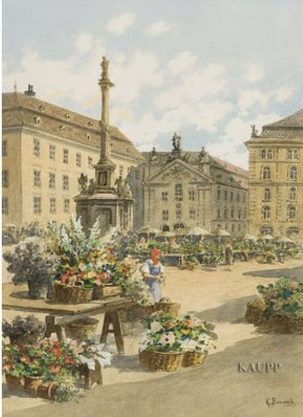 Gustav Benesch ( 1900 - ) is an Austrian painter. Gustav Benesch s works have been put up for auction numerous times, with realized prices varying from 238.78 USD for Das Freihaus mit dem Naschmarkt in 2005 to 358.17 USD for Blumenmarkt am Hof in 2005 , based on the size and medium of the artwork.