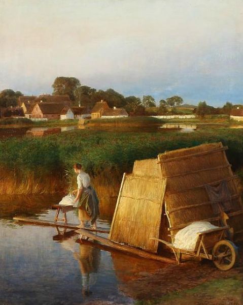 Hans Ole Brasen ( 1849 - 1930 ) was a Danish painter. Hans Ole Brasen s works have been put up for auction numerous times, with realized prices surpassing estimated prices, varying from 3332.83 USD for Ved Stranden. Solnedgang” in 2004 to a remarkable record 103300.45 USD for Vaskepladsen i Sørup ved Fredensborg in 2006 , based on the size and medium of the artwork.