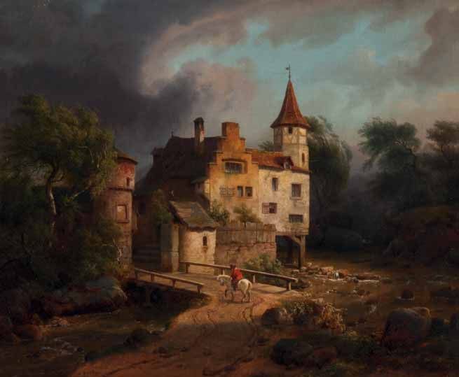 Heinrich Franz Gundez Von Rustige ( 1810 - 1900 ) was a German painter. Heinrich Franz Gundez Von Rustige s works have been put up for auction numerous times, with realized prices surpassing estimated prices, varying from 1094.01 USD for Flußlandschaft mit Bauerngehöft in 2006 to 3105.59 USD for Reiter auf Schimmel vor Brücke und Schloss in 2014 , based on the size and medium of the artwork.