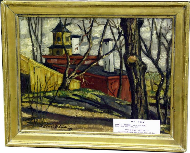 Helene Meurling Aperia ( 1909 - ) is a Finnish painter. Helene Meurling Aperia s works have been put up for auction numerous times, with realized prices varying from 49.28 USD for Münchenbryggeriet in 2005 to 49.94 USD for Motiv från Skansen in 2008 , based on the size and medium of the artwork.