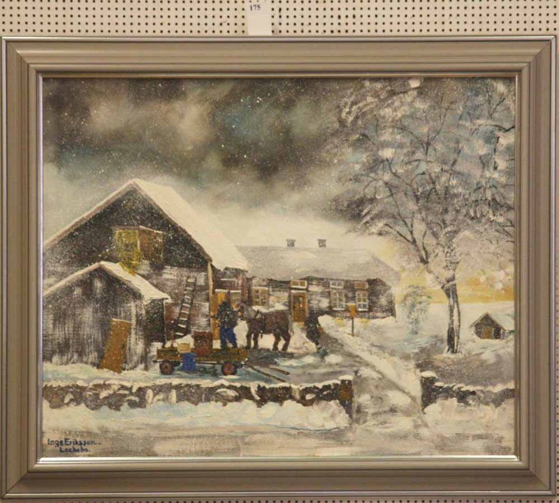 Inge Eriksson ( - ) is a painter. Inge Eriksson s works have been put up for auction numerous times, with realized prices surpassing estimated prices, varying from 86.04 USD for unknown in 2008 to 96.19 USD for Lockebo in 2010 , based on the size and medium of the artwork.