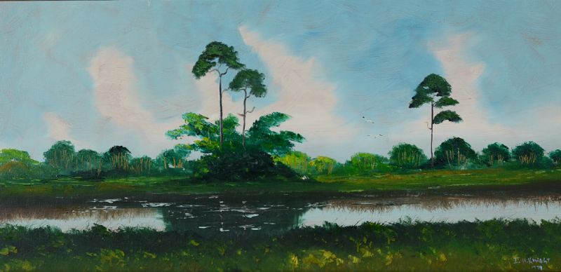 Issac Knight ( 1900 - ) is a painter. Issac Knight s works have been put up for auction numerous times, with realized prices varying from 900 USD for Trees and Pond in 2008 to 950 USD for Florida Highwaymen Everglade backwaters scene in 2015 , based on the size and medium of the artwork.