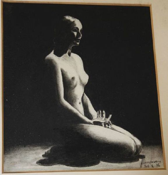 J Simpson ( - ) is a painter. J Simpson s works have been put up for auction numerous times, with realized prices varying from 27.8 USD for naive study of figures and sheep in island landscape in 2004 to 256.07 USD for Female nude study in 2010 , based on the size and medium of the artwork.