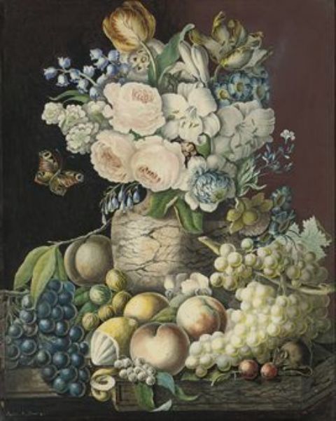 Jane M Browne ( - ) is a painter. Jane M Browne s works have been put up for auction numerous times, with realized prices surpassing estimated prices, varying from 75.04 USD for Still Life Study of Mixed Flowers in a Vase with Butterfly and Fruit on a Ledge in 2009 to 1239 USD for Peonys, lilies, bluebells and tulips in a marble vase surrounded by an abundance of grapes, lemons and peaches in 20