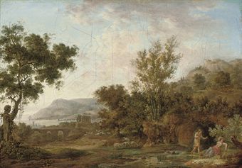 Jean Baptiste François Génillion ( 1750 - 1829 ) was a French painter. Jean Baptiste François Génillion s works have been auctioned off multiple times, with realized prices varying according to the size and medium of the artwork, for instance of 1234.95 USD for A wooded river landscape with an amorous couple in the foreground in 2009