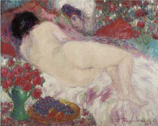 Jean Timmermans ( 1899 - 1986 ) was a Belgian painter. Jean Timmermans s works have been put up for auction numerous times, with realized prices surpassing estimated prices, varying from 3359.65 USD for La vie paysanne in 2006 to 10829.51 USD for Reclining nude in 2006 , based on the size and medium of the artwork.