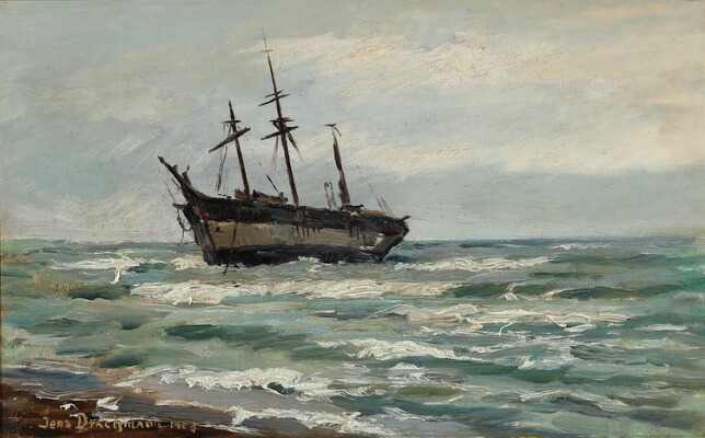 Jens Holger Drachmann ( 1880 - 1929 ) was a painter. Jens Holger Drachmann s works have been auctioned off multiple times, with realized prices varying according to the size and medium of the artwork, for instance of 399.07 USD for Stranded ship near a coast in 2020