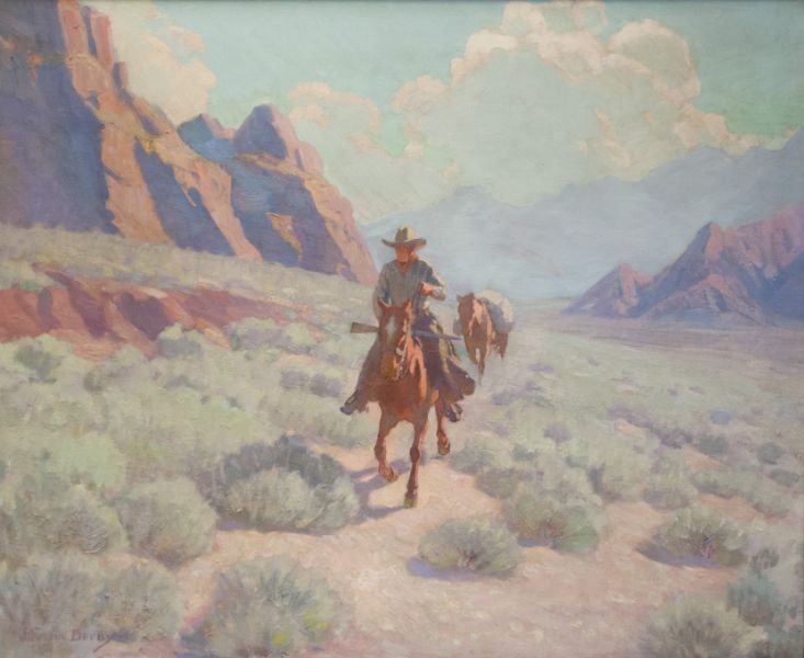 John Frank Derby ( - ) is a painter. John Frank Derby s works have been auctioned off multiple times, with realized prices varying according to the size and medium of the artwork, for instance of 550 USD for Man on horseback through the desert in 2015