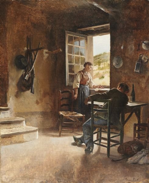 José Júlio De Sousa Pinto ( 1856 - 1939 ) was a painter. José Júlio De Sousa Pinto s works have been put up for auction numerous times, with realized prices surpassing estimated prices, varying from 872.79 USD for Paisagem in 2013 to 103989.41 USD for Lendo a carta in 2015 , based on the size and medium of the artwork.