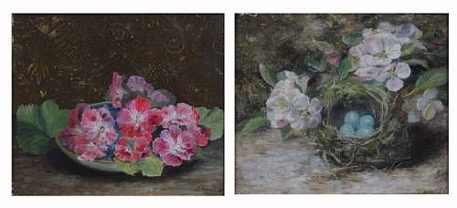 Juliet Knowles ( - ) is a painter. Juliet Knowles s works have been put up for auction numerous times, with realized prices varying from 65.87 USD for till life of blossom and a bird's nest in 2005 to 312.95 USD for Apple blossom and a bird's nest; pelargoniums in a saucer in 2009 , based on the size and medium of the artwork.