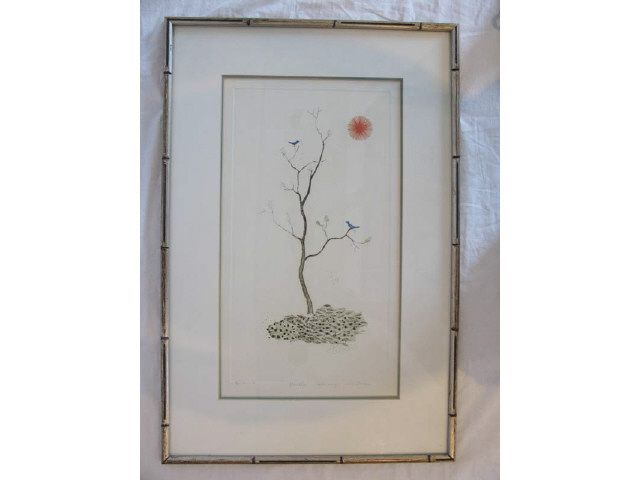 Kenji Ushiku ( 1922 - ) is a Japanese painter. Kenji Ushiku s works have been auctioned off multiple times, with realized prices varying according to the size and medium of the artwork, for instance of 90 USD for 2 Birds in Tree in 2006