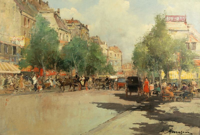 Mario Maresca ( 1877 - ) is an Italian painter. Mario Maresca s works have been put up for auction numerous times, with realized prices surpassing estimated prices, varying from 106.15 USD for Allessio in 2005 to 1320 USD for Paris Street in 2012 , based on the size and medium of the artwork.