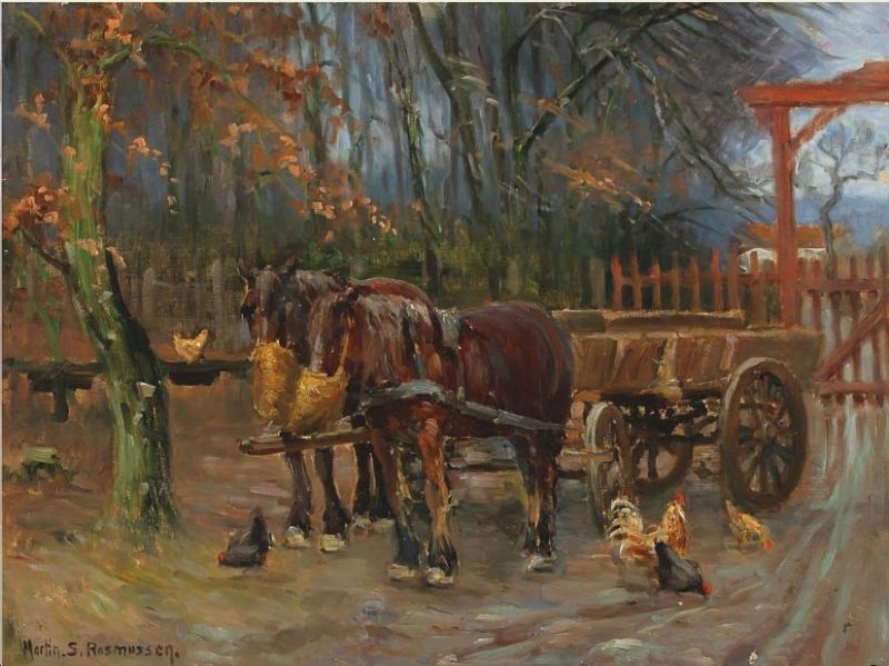 Martin S Rasmussen ( 1892 - ) is a Danish painter. Martin S Rasmussen s works have been auctioned off multiple times, with realized prices varying according to the size and medium of the artwork, for instance of 144.8 USD for Carriage and hens outside the Dyrehaven. in 2011