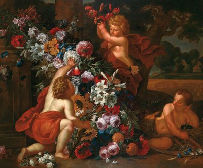 Matthäus Terwesten ( 1670 - 1757 ) was a Dutch painter. Matthäus Terwesten s works have been put up for auction numerous times, with realized prices surpassing estimated prices, varying from 7910.37 USD for CERES HOLDING A SILVER-GILT BOWL SURROUNDED BY PUTTI in 2004 to 25894.2 USD for Magnificent still life with putti hanging up a large bouquet of flowers in 2009 , based on the size and medium