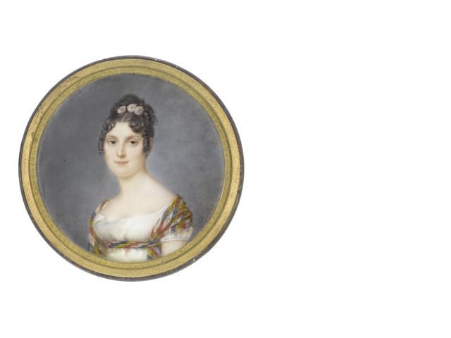 Mlle Aimée Perlet ( 1798 - 1854 ) was a French painter. Mlle Aimée Perlet s works have been auctioned off multiple times, with realized prices varying according to the size and medium of the artwork, for instance of 702.78 USD for A Lady, wearing white dress and multicoloured shawl draped over her shoulders and beneath her bust, her dark curls centrally par in 2014