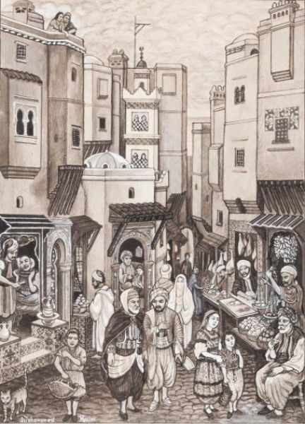 Mohammed Racim ( 1896 - 1975 ) was an Algerian painter. Mohammed Racim s works have been auctioned off multiple times, with realized prices varying according to the size and medium of the artwork, for instance of 4277.37 USD for Le roi Khosrow découvre Chirin se baignant in 2004