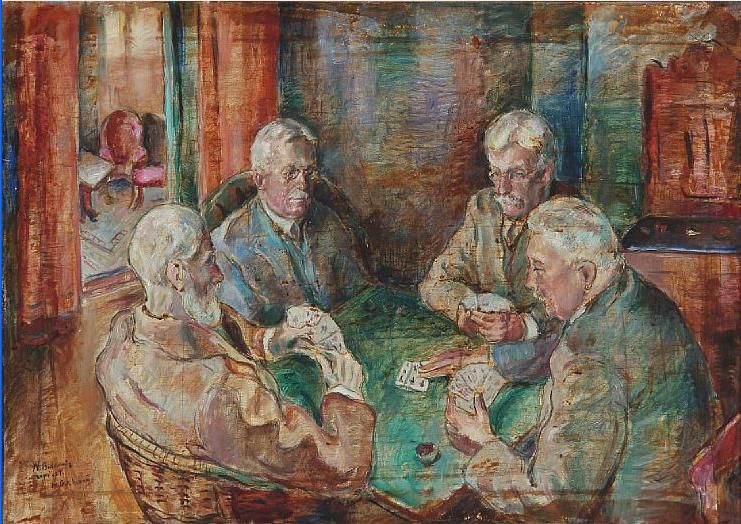 N Bakkenhaus ( - ) is a painter. N Bakkenhaus s works have been auctioned off multiple times, with realized prices varying according to the size and medium of the artwork, for instance of 169.39 USD for Four men playing cards in 2013