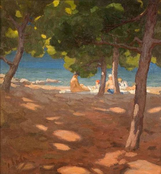 Nicholaos Othoneos ( 1877 - 1950 ) was a Greek painter. Nicholaos Othoneos s works have been put up for auction numerous times, with realized prices surpassing estimated prices, varying from 4265.15 USD for FEEDING THE GOATS in 2003 to 10380.07 USD for THE RED UMBRELLA, VRELOS, SPETSES in 2011 , based on the size and medium of the artwork.