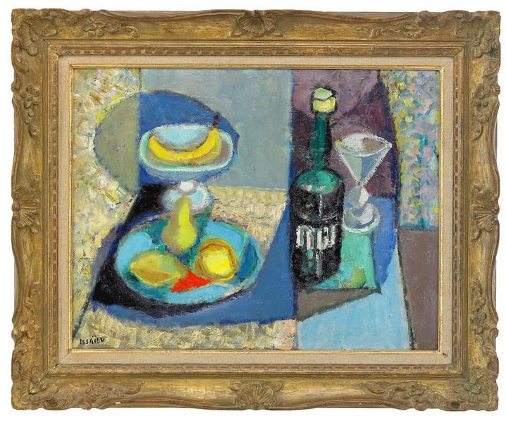 Nikolai Alexandrovich Issaev ( 1891 - 1977 ) was a Russian painter. Nikolai Alexandrovich Issaev s works have been put up for auction numerous times, with realized prices surpassing estimated prices, varying from 3287.26 USD for Still Life with a Book and a Pineapple in 2004 to 18136.85 USD for Still Life with Oranges in 2008 , based on the size and medium of the artwork.