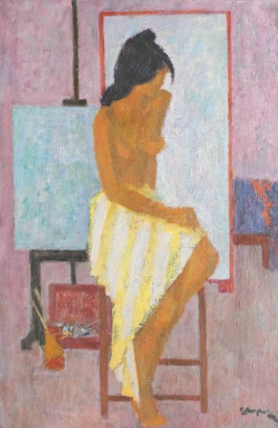 Octav Angheluta ( 1904 - 1979 ) was a painter. Octav Angheluta s works have been put up for auction numerous times, with realized prices surpassing estimated prices, varying from 1738.12 USD for Reading in 2013 to 2034.48 USD for In the studio in 2013 , based on the size and medium of the artwork.