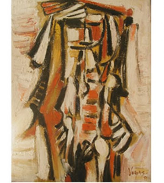 Oswaldo Vigas ( 1926 - ) is a Venezuelan Late Modernism artist, best known as a self-taught painter and muralist. His work includes painting, sculptures, prints, drawings, ceramics and tapestries. Oswaldo Vigas s works have been put up for auction numerous times, with realized prices greatly surpassing estimated prices, varying from 8500 USD for untitled in 2005 to a remarkable record 11000000 U
