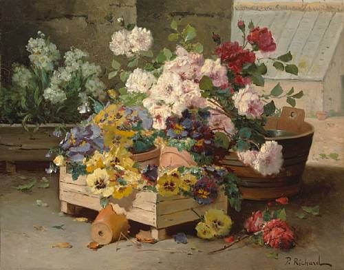 P Richard ( - ) is a painter. P Richard s works have been auctioned off multiple times, with realized prices varying according to the size and medium of the artwork, for instance of 10625 USD for A still life with roses, pansies and other flowers in 2011