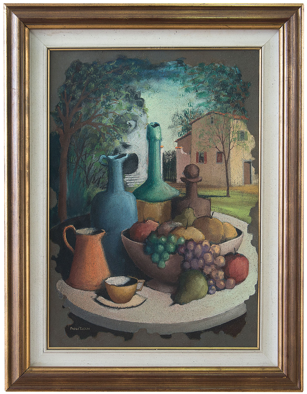 Paolo Toschi ( 1938 - ) is a painter. Paolo Toschi s works have been put up for auction numerous times, with realized prices varying from 87.5 USD for NATURA MORTA in 2006 to 270.83 USD for Composizione in 2019 , based on the size and medium of the artwork.