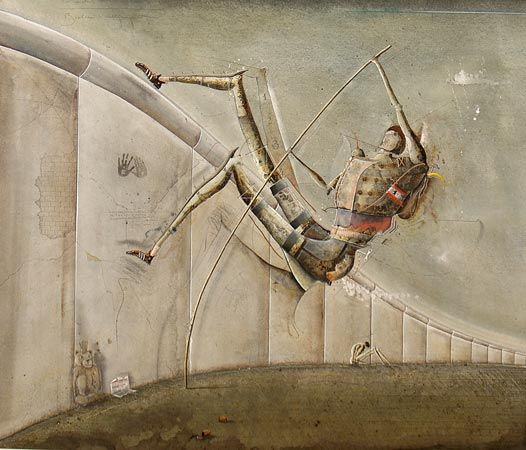 Rainer Hercks ( 1951 - ) is a German painter. Rainer Hercks s works have been put up for auction numerous times, with realized prices varying from 42.57 USD for Kleine Eulenspiegelstele gekreuzigt in 2005 to 177.95 USD for Berlin - Walljumper in 2007 , based on the size and medium of the artwork.