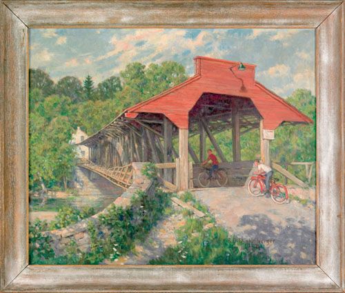 Ralph D Dunkelberger ( 1894 - 1965 ) was an American painter. Ralph D Dunkelberger s works have been put up for auction numerous times, with realized prices surpassing estimated prices, varying from 2300 USD for ALONG THE CREEK in 2005 to 5148 USD for Landscape with two children riding bicycles across a covered bridge in 2009 , based on the size and medium of the artwork.