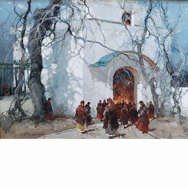 Sergei Kolesnikoff ( 1889 - 1947 ) was a painter. Sergei Kolesnikoff s works have been put up for auction numerous times, with realized prices surpassing estimated prices, varying from 4880 USD for Following the Trail in 2012 to 25000 USD for Russian Easter in 2012 , based on the size and medium of the artwork.