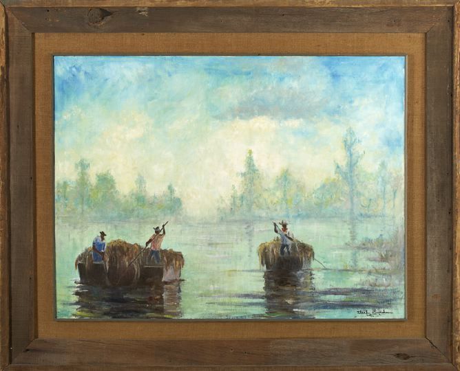 Steele Burden ( 1900 - 1995 ) was an American painter. Steele Burden s works have been put up for auction numerous times, with realized prices surpassing estimated prices, varying from 2280 USD for Bayou Cabin Scene with Figures at Sunset in 2009 to 13530 USD for The Moss Pickers in 2010 , based on the size and medium of the artwork.